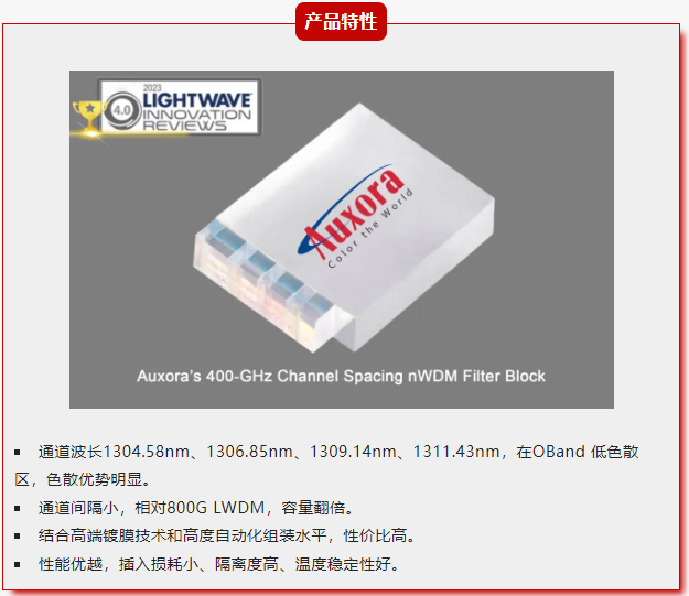 Auxora 400G nWDM Filter Block won the Lightwave Annual Innovation Award