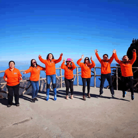 寿逾千年的迎客松是黄山的代表和象征,它热情而又稳重,好客却不谦卑,亲切略带矜持,迎宾绝无虚意。在迎客松前,大家和各自的内部客户拥抱留影寓意深远,团队成员的交流和沟通需要真诚和热情,需要理解和支持,才能共同完成目标,推动公司不断发展。大家尽情拥抱,开心合影,一张张笑脸镌刻在照片上,见证了我们的互助友爱。